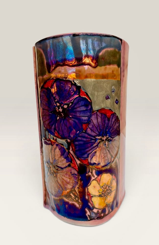 “Cranesbill and landscape” reduction lustre vase